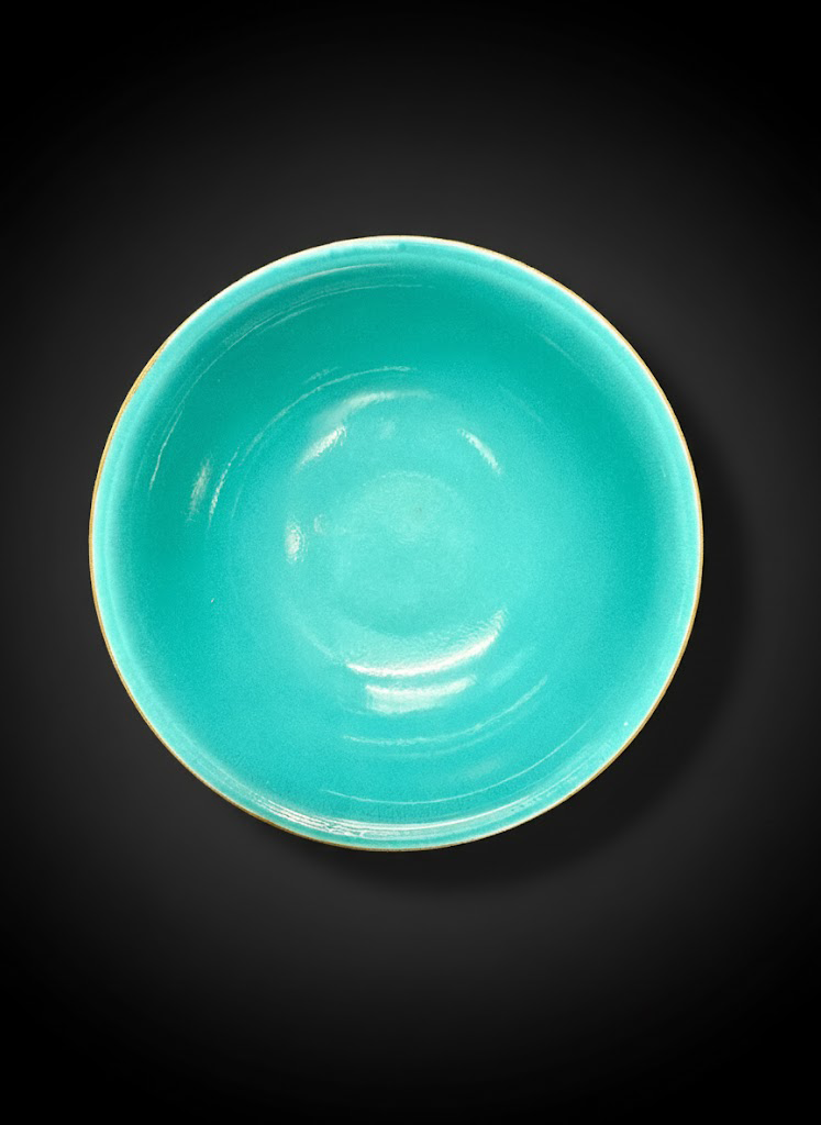碗内壁施以松石绿釉,釉色莹润细腻。外壁的浓艳与内壁的素雅相辅相成,静中见华,和谐而含蓄。
