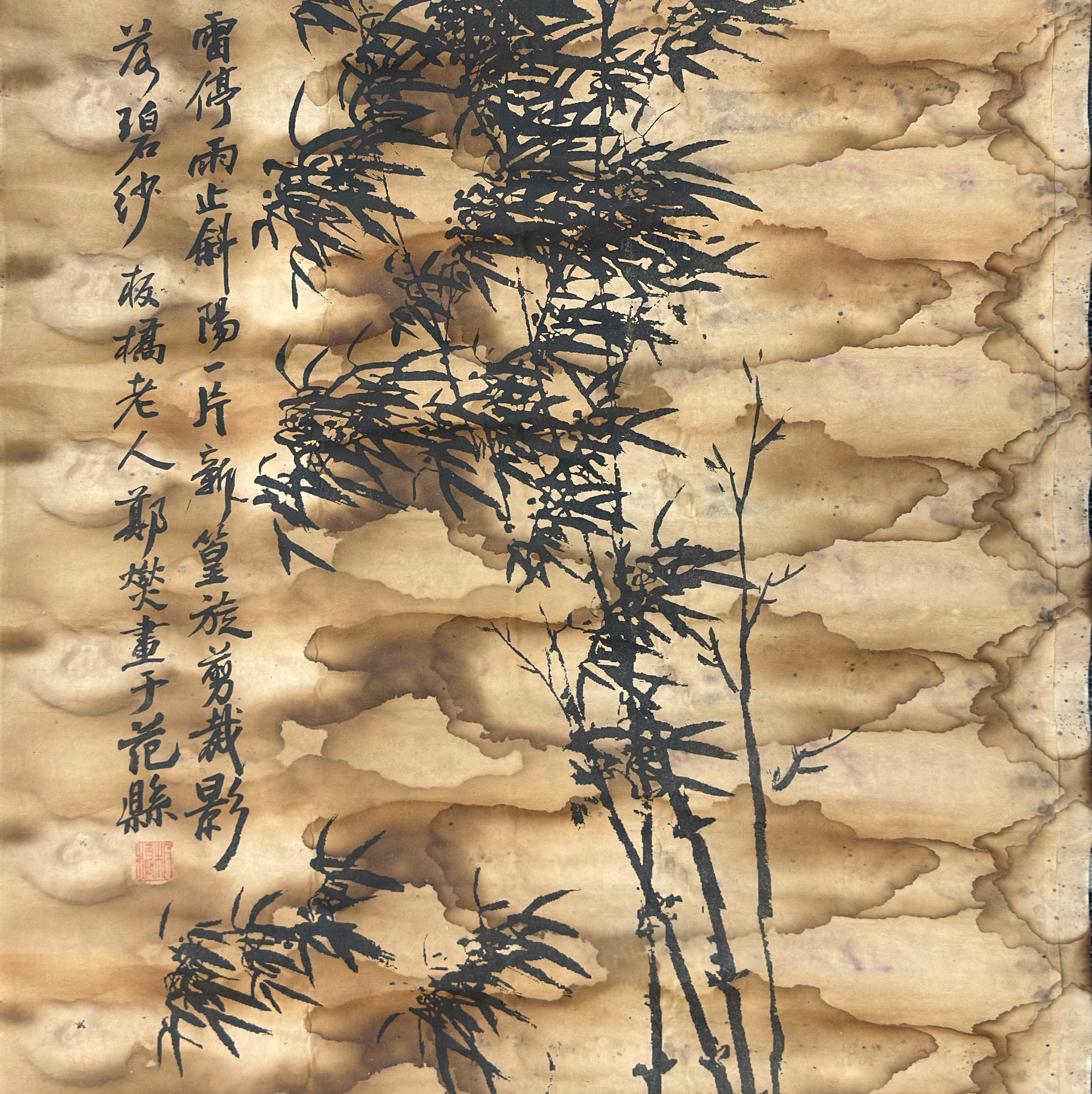 画中修竹数竿,挺拔峭立,枝叶交错生姿,浓淡相映,虚实相生