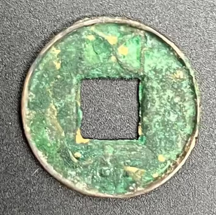 钱币表面覆盖着厚重的铜绿锈蚀,它标志着汉武帝将铸币权收归中央。