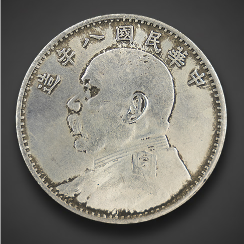 中华民国八年(1919年)袁世凯像壹圆银币,俗称“袁大头”,银质精良,雕工细致。