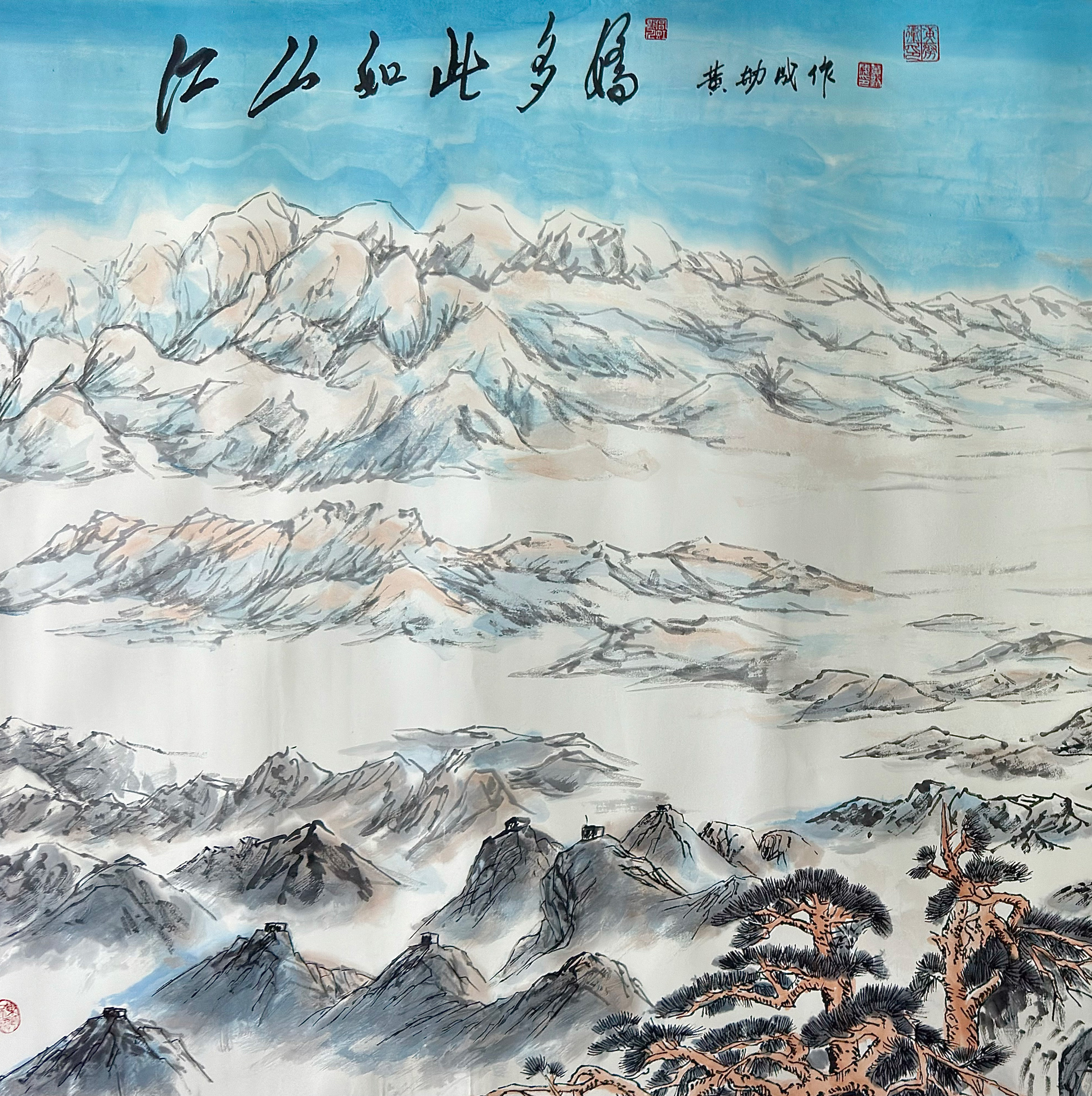 以横幅构图铺展祖国山河的壮丽景象,群山连绵、云海翻腾,气势恢宏。