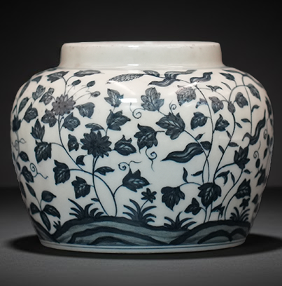 器型饱满圆润,青花淡雅清新,花卉纹饰细腻自然,底款工整秀丽,典型成化风格。