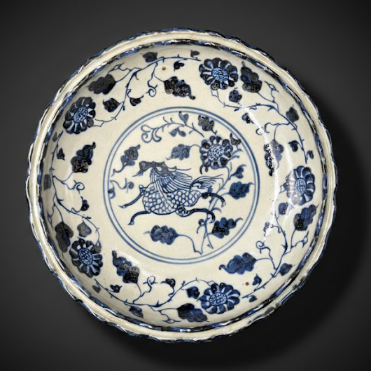 大明永乐青花龙纹盘,青花浓艳,龙纹威武,展现永乐御窑精湛工艺与皇家气象。