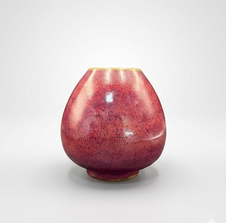 器形秀雅端庄,釉色温润如霞,红中泛赤金层次丰富。底书“大清雍正年制”款,胎质细腻。