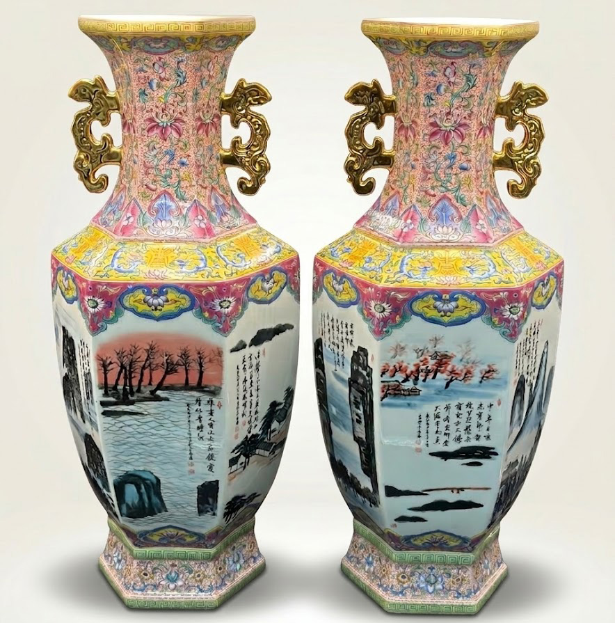 由李文跃与李山联袂创作,将齐白石笔墨意趣融入粉彩瓷艺,兼具传统文人气韵与当代审美。