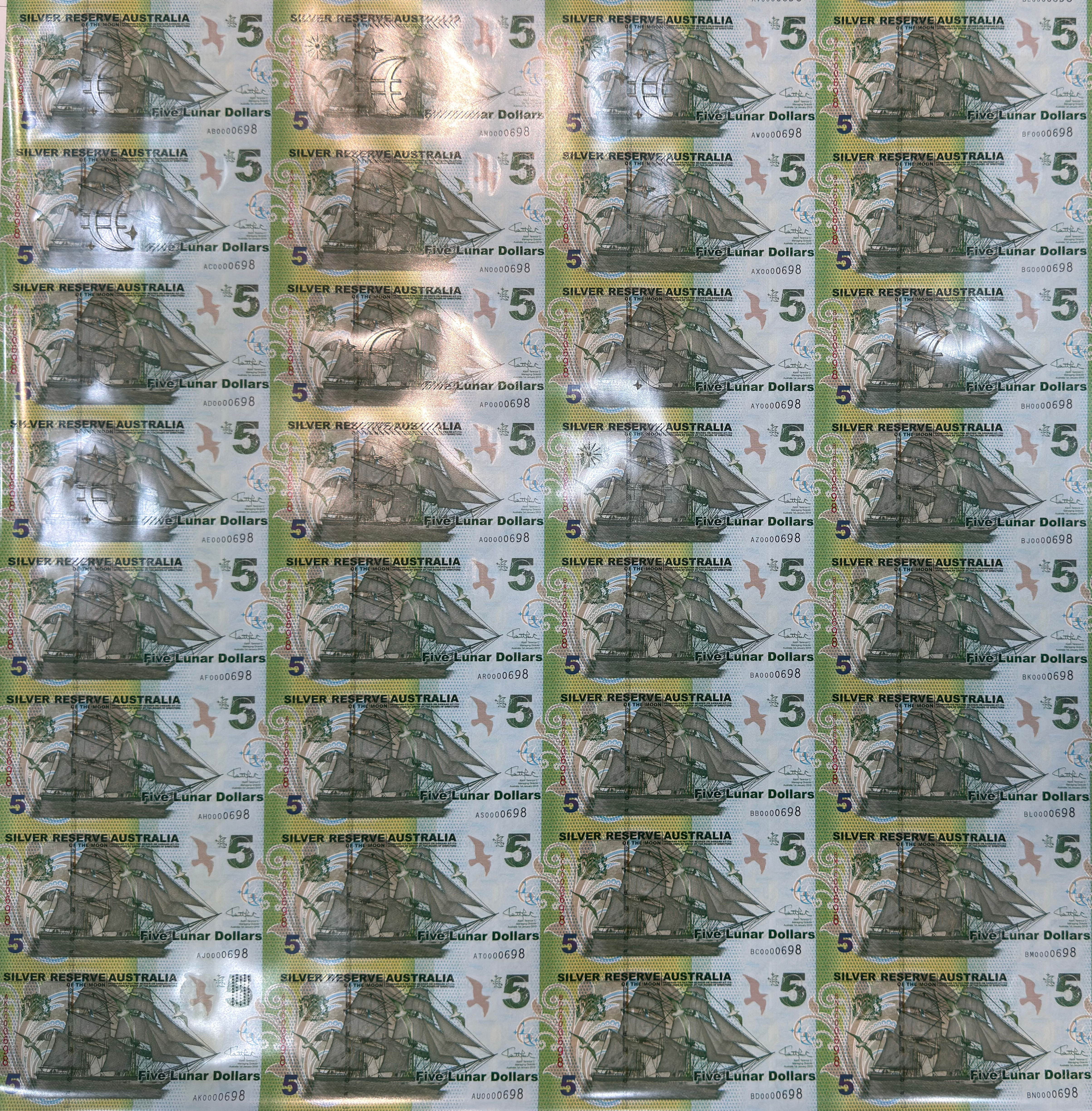 三张澳大利亚月银连体钞,以完整连体形态展现金属光泽与印刷艺术之美,融合“月球”主题与探索意象。