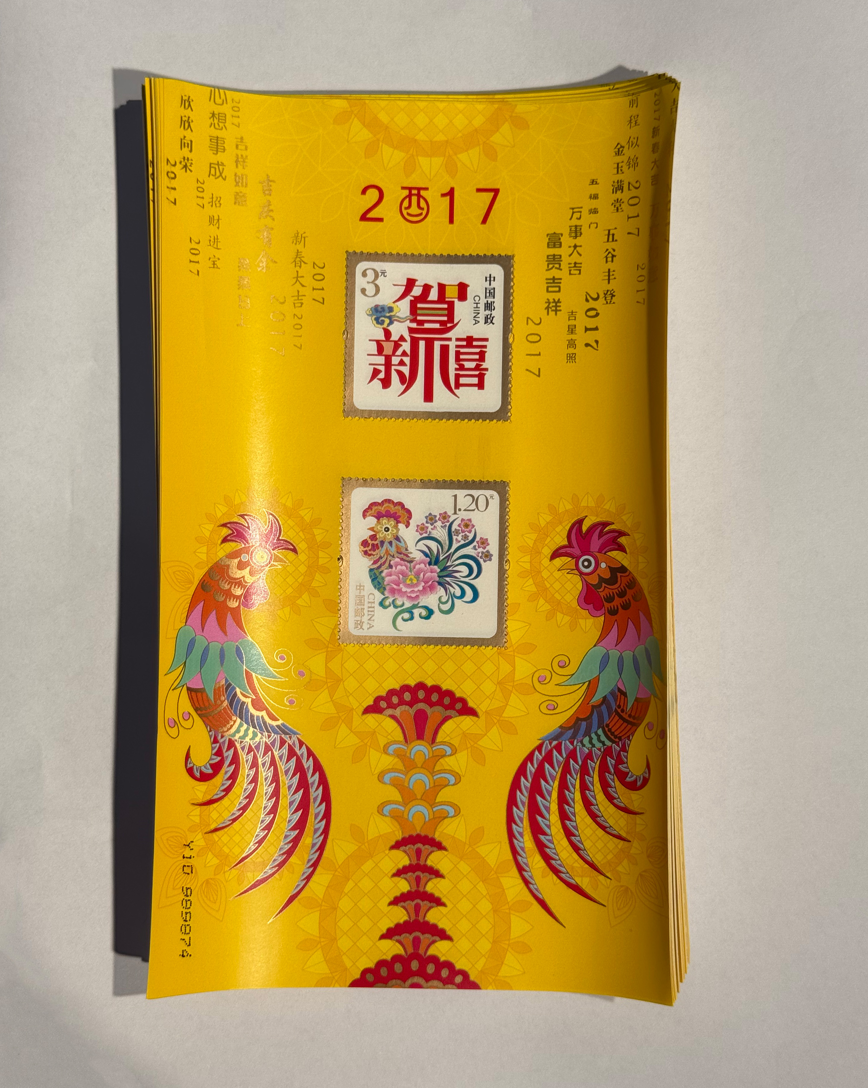 《2017 鸡年贺喜邮票册》限量发行1000套,由韩美林设计,造型喜庆寓意吉祥。