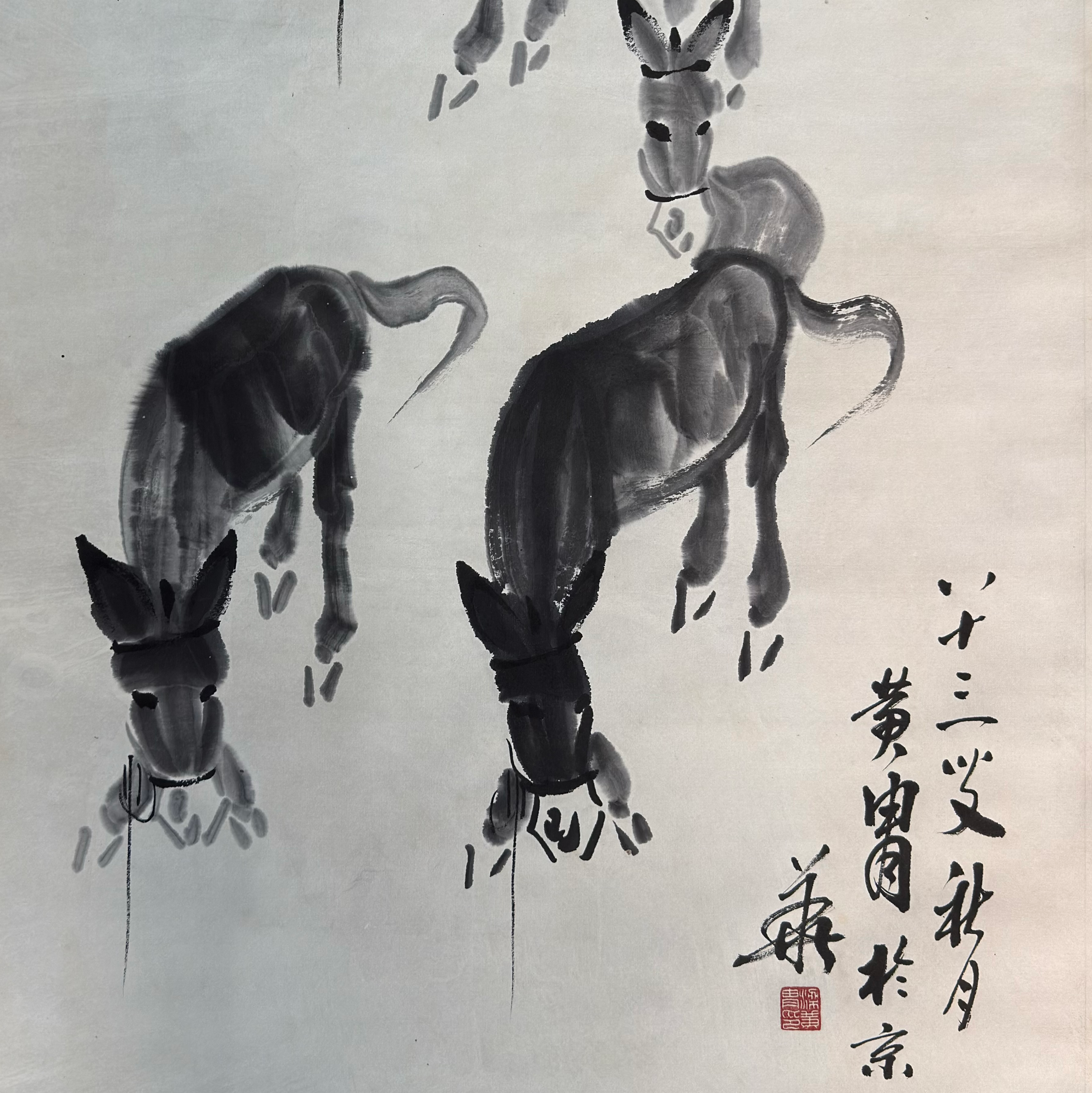 《五驴图》以豪放笔墨勾勒五驴神态,动静相生、气韵生动,展现画家深厚功力与生活情怀。