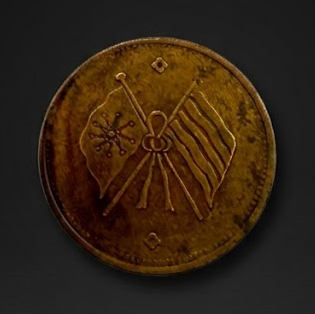 双旗寓意团结,嘉禾象征丰收,币面中西并融,工艺精湛。