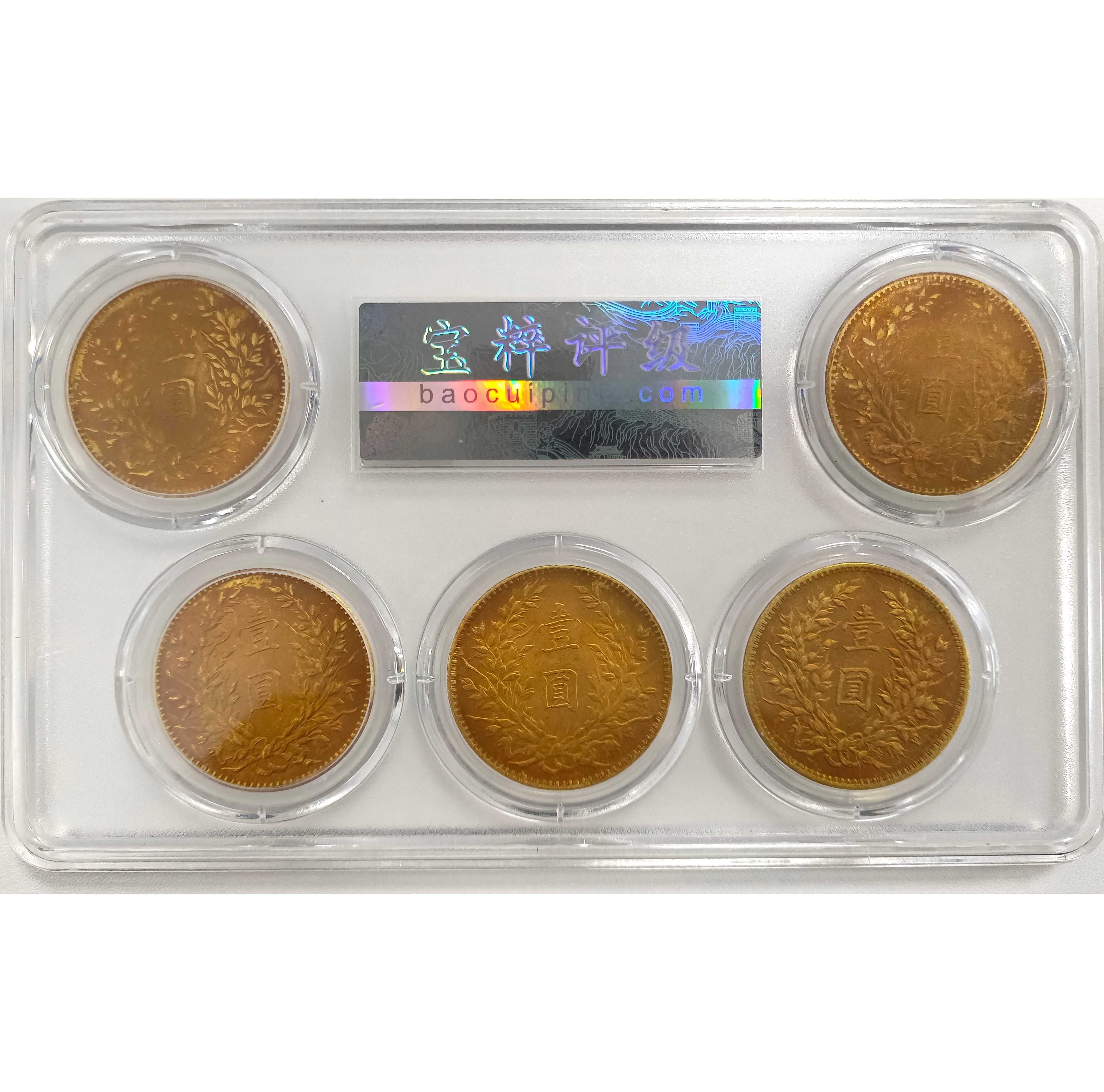 正面刻“大清金币”,币文端庄,边饰整齐;背面龙纹昂首盘旋,线条流畅,刻工精细。