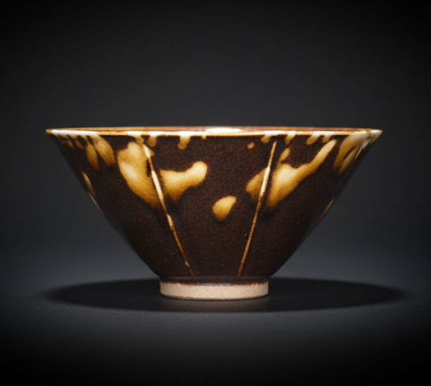 釉色深沉如墨,金斑若流霞,造型端庄典雅,展现宋代窑变艺术。
