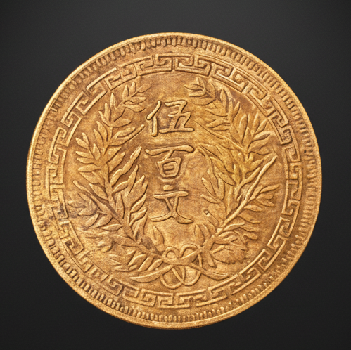 这枚中华民国双旗币“伍佰文”,以其宏大规格与罕见面值,见证了民国初期的金融风云与地方铸币史。