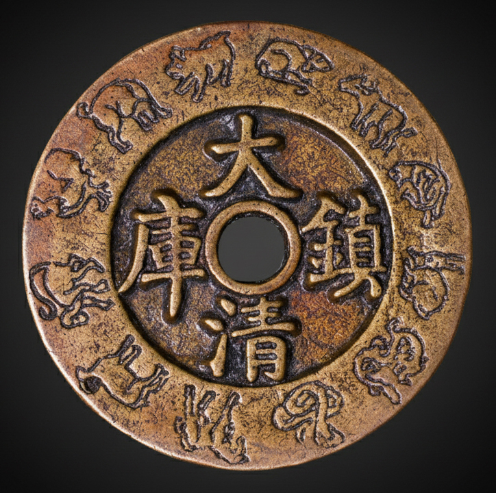 形制规整,工艺精湛,包浆温润。其纹饰雕刻精细,字口峻拔挺劲,边廓周整,尽显雕工之巧与钱范之精。