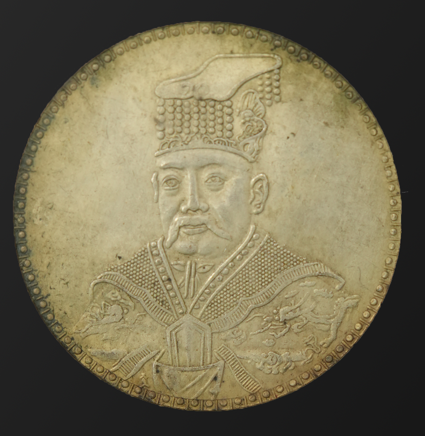 1916年袁世凯称帝时铸造,正面为帝王冕服像,见证帝制历史。