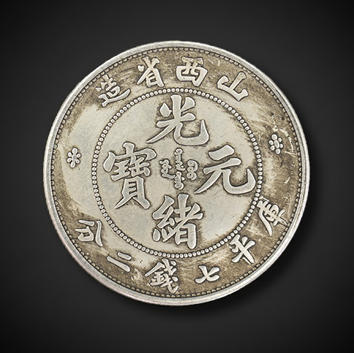 清代光绪年间山西省造库平七钱二分银币,铸工精良,图文庄重。正面光绪元宝,背面蟠龙腾云,存世稀少。